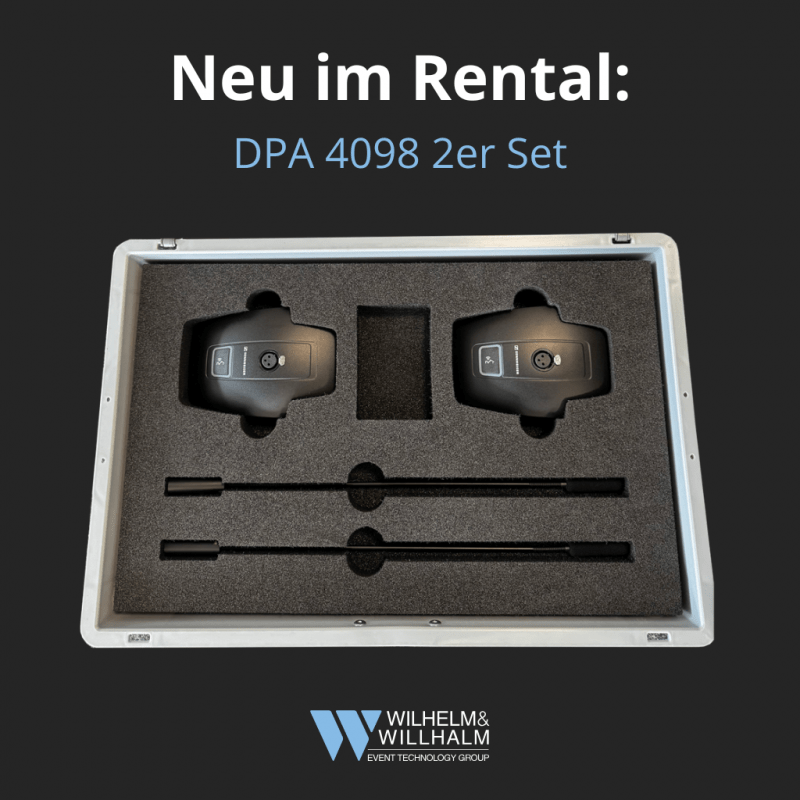 Ab sofort sind im Rental verfügbar: 2x DPA 4098 2er Set / Mikrofon Tischsprechstelle, 32 cm, schwarz 12x DPA 4098 2er Set / Mikrofon Tischsprechstelle, 47 cm, schwarz bestehend aus DPA 4098 Supercardioid Schwanenhalsmikrofon https://www.dpamicrophones.com/de/microphones/gooseneck/4098g?variant=11 und Sennheiser MAT 133-S B Tischfuß https://www.sennheiser.com/de-de/catalog/products/meeting–und-konferenzsysteme/mat-133/mat-133-s-b-505624 Feature: Zweifarbiger Lichtring als optische Rückmeldung Mikrofon Schaltermodi: Push to talk, […]